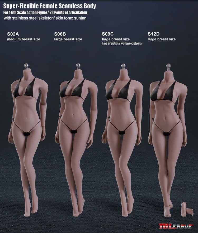 Cơ thể figure 1/6 TBLeague Body S02A/S06B/S09C/S12D da ngăm. liền mạch, khung thép 26 – 28 khớp