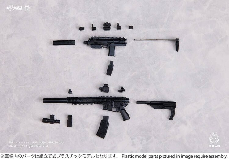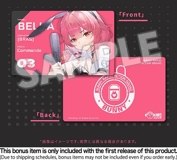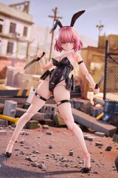 Commando Belka, the leader of the 1/12-scale “Bunny Rapid Action Squad” action-figure series from Sushing, is now ready for order! She comes with four interchangeable faces: a smile, a round-eyed expression, a combat face, and an ecstatic look! Five sets of interchangeable hands are included too: clawed hands, weapon-holding hands, gripping hands, a pair of hands with a provocative gesture, and a set of posing hands. Her base can store her weapons and interchangeable parts for convenience, and she uses “KACHA” joints developed exclusively by Sushing, so you can enjoy her wide range of motion to the fullest! As a limited bonus included only with the first batch of this figure, you’ll also receive a set of interchangeable bare feet, a dog tag, and a collection card! (These items are only included with the first batch of this figure; if yours does not include them, it was not part of the first batch.) Order her for your own collection today!