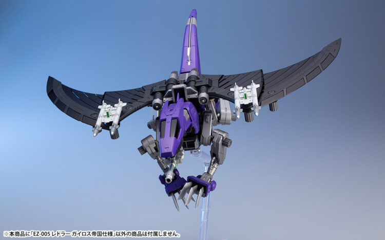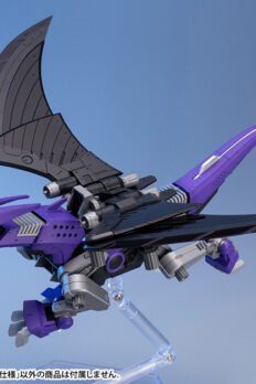 Máy bay phản lực chiến đấu tầm cực cao nhanh nhất từ cuộc chiến ở lục địa phía tây, Zoid Redler kiểu rồng đã gia nhập dòng HMM! Ẩn bên trong hình bóng màu tím tuyệt đẹp của Zoid là vô số các tính năng khớp nối. “Lưỡi dao Lazer Biến hình” có thể được triển khai mà không ảnh hưởng đến đuôi, và ống hút và vòi phun phía sau có thể được thay thế bằng nắp khớp nối.