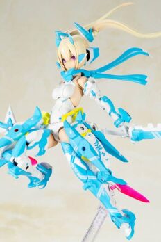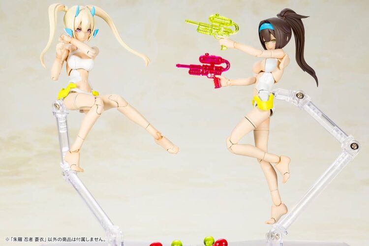 Kotobukiya’s “Megami Device” Asura Ninja Aoi returns in a stunning new color scheme! Her Machinika body is highly posable after assembly, and she can be enjoyed barefoot and bare-handed with parts replacement; she has a new hairstyle, too, which is interchangeable with her original hairstyle. She also comes with three pre-painted faceplates and five sets of interchangeable hands; she also comes with all the things a ninja needs: shuriken, kunai, ninja swords, and other weapons. She can also use weapons and armor from Kotobukiya’s “M.S.G,” “Frame Arms,” and “Frame Arms Girl” series! A set of decals for her eyes and markings are also provided. Order her for your own collection today!