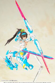Kotobukiya’s “Megami Device” Asura Archer Aoi returns in a stunning new color scheme! Her Machinika body is highly posable after assembly, and she can be enjoyed barefoot and bare-handed with parts replacement; she has a new hairstyle, too, which is interchangeable with her original hairstyle. She also comes with three pre-painted faceplates, five sets of hands, plus her bow and sword (with a clear pink blade). In addition, she can also use weapons and armor from Kotobukiya’s “M.S.G,” “Frame Arms,” and “Frame Arms Girl” series! A set of decals for her eyes and markings are also provided. Order her for your own collection today!