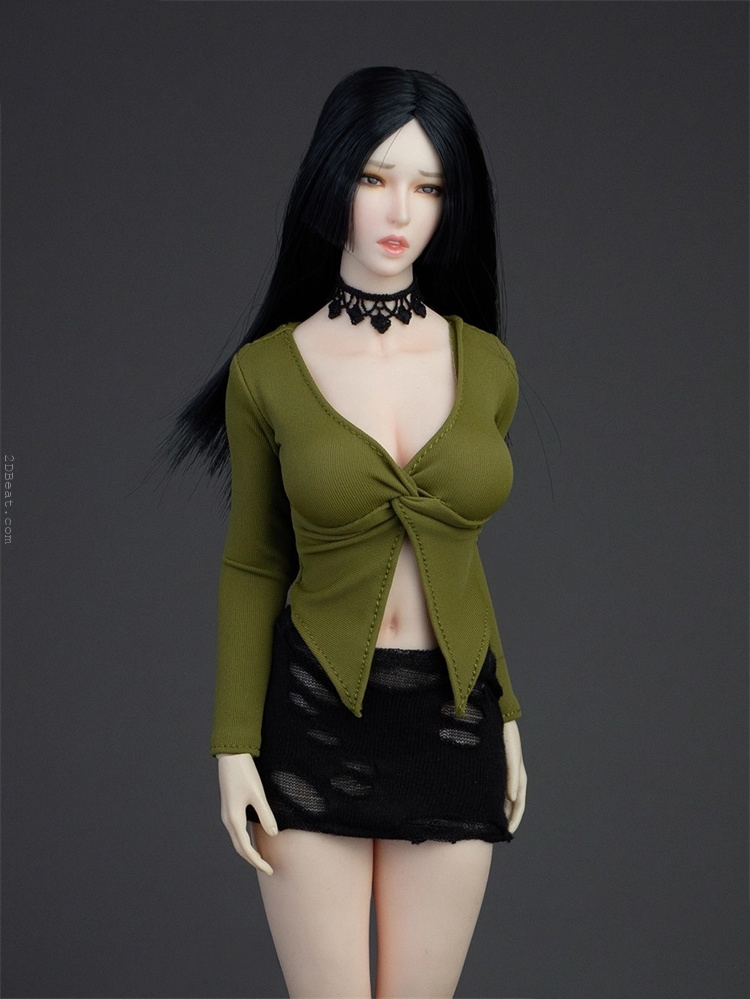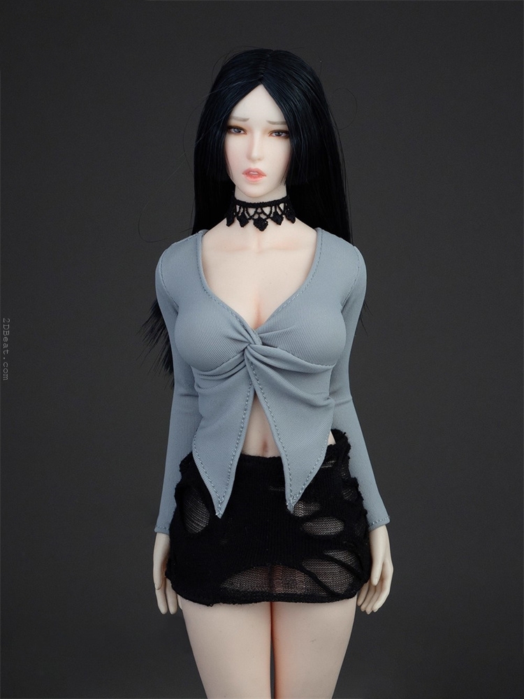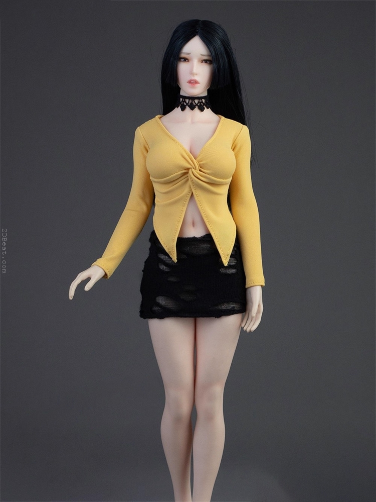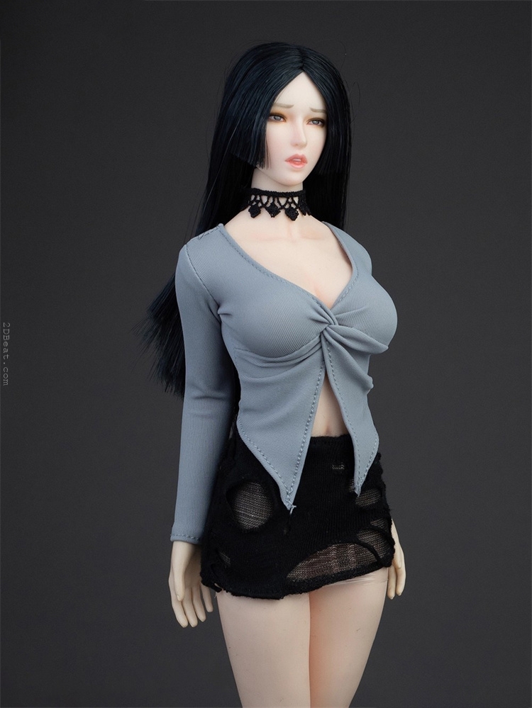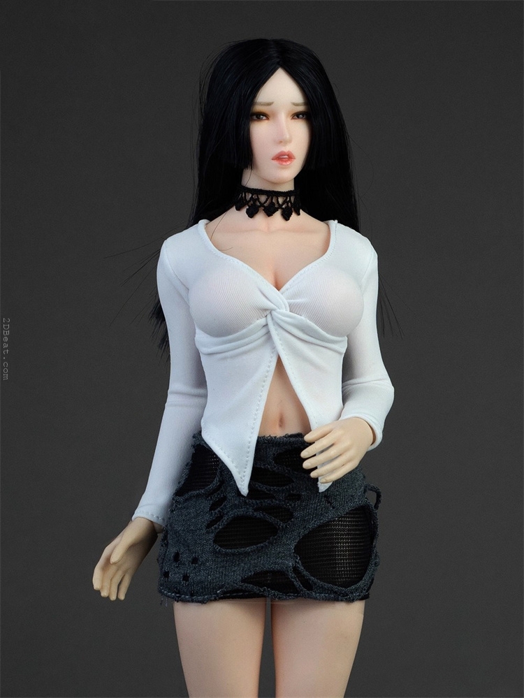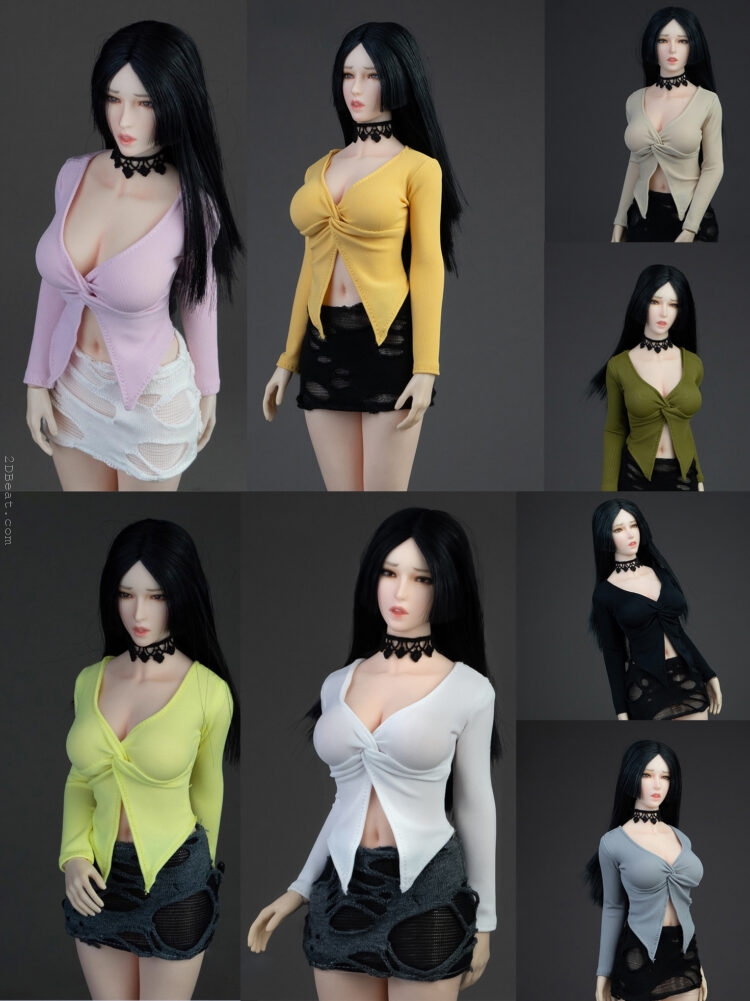 Trang phục figure, búp bê 1/6 Áo Sơ Mi Cổ Mở & Váy Ôm Rách Gấu