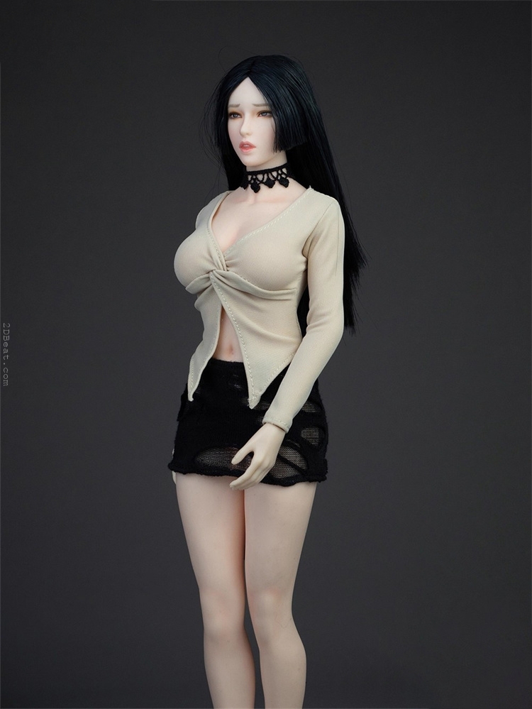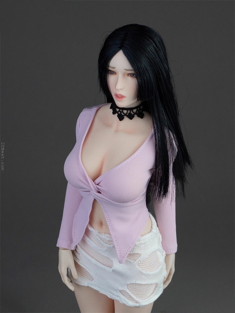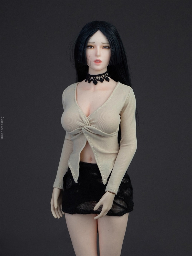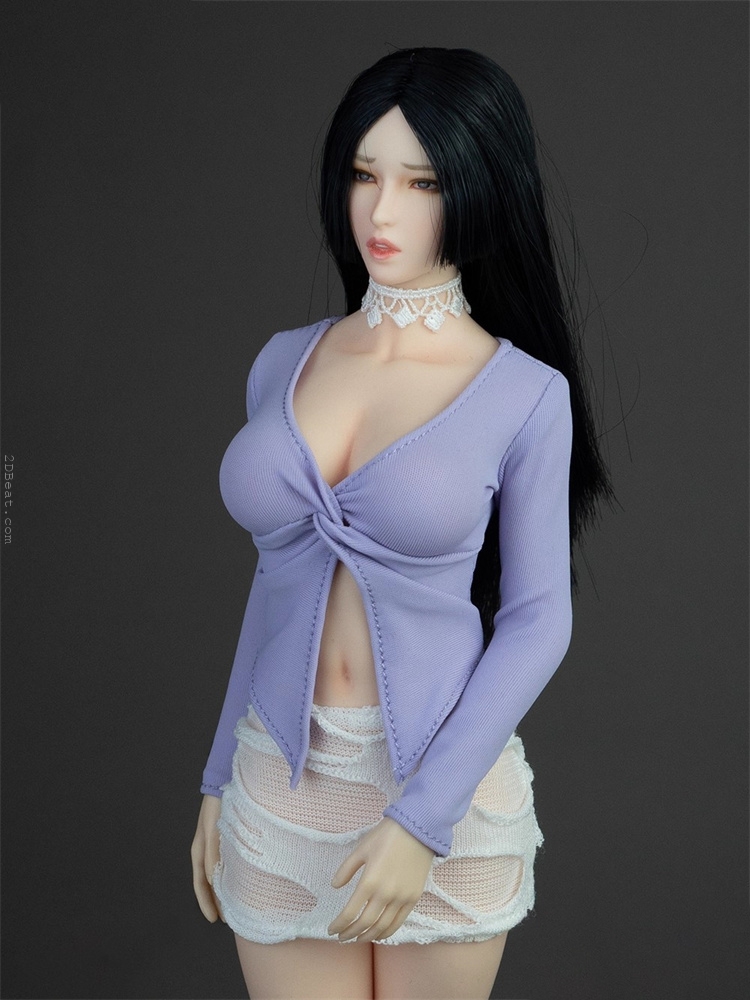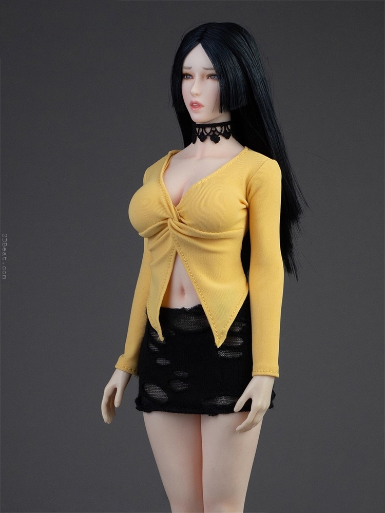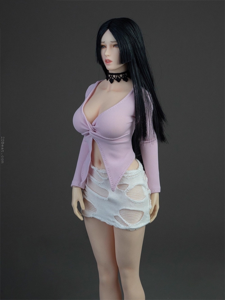 Trang phục figure, búp bê 1/6 Áo Sơ Mi Cổ Mở & Váy Ôm Rách Gấu