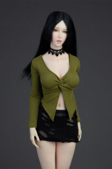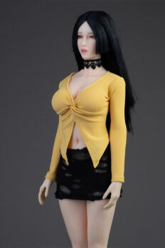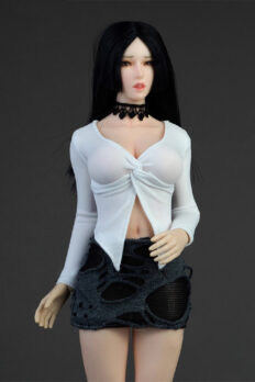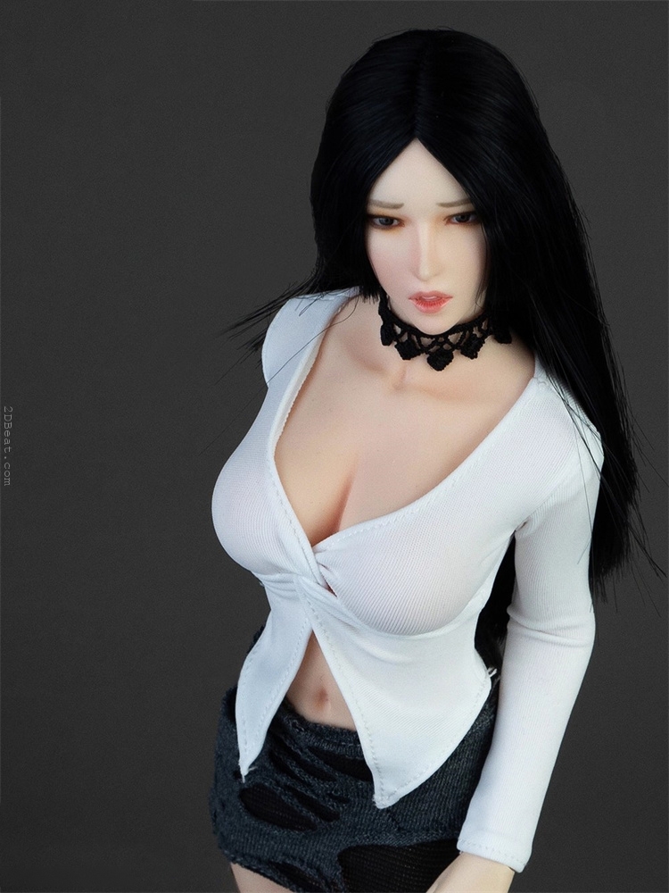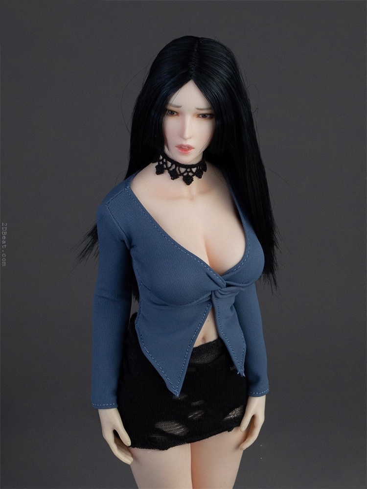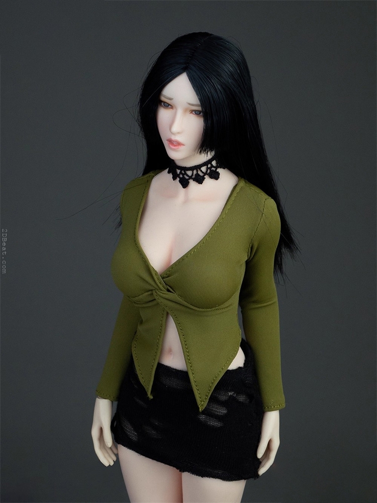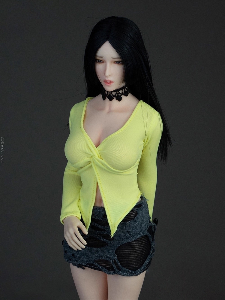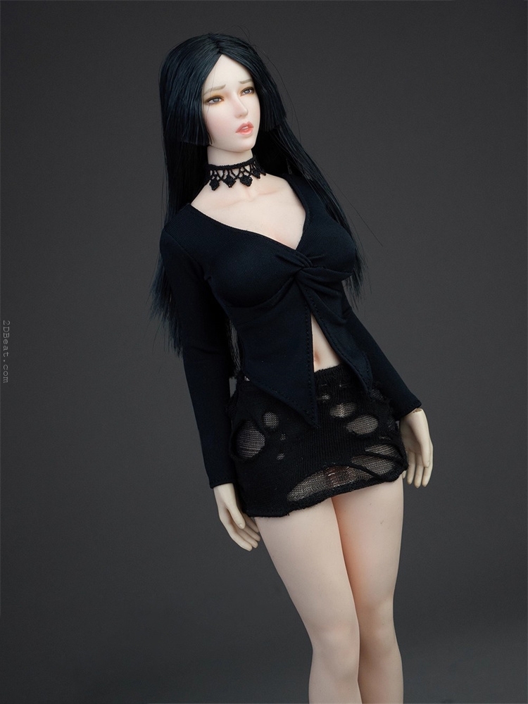 Trang phục figure, búp bê 1/6 Áo Sơ Mi Cổ Mở & Váy Ôm Rách Gấu